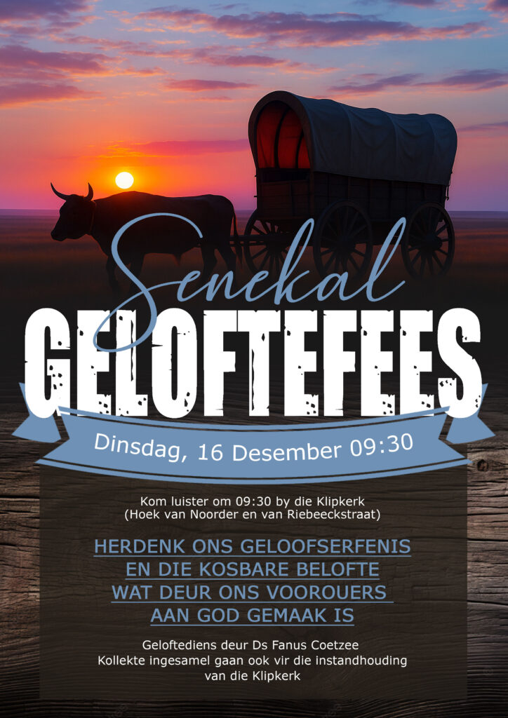 Indien u graag wil help met die beplanning van hierdie Geloftefees, kan u gerus in kontak kom met ons deur ‘n WhatsApp te stuur na 082 350 2164 of epos info@tailorweb.co.za. Deel in die groei van ons gemeenskap en bou aan ons nalatenskap